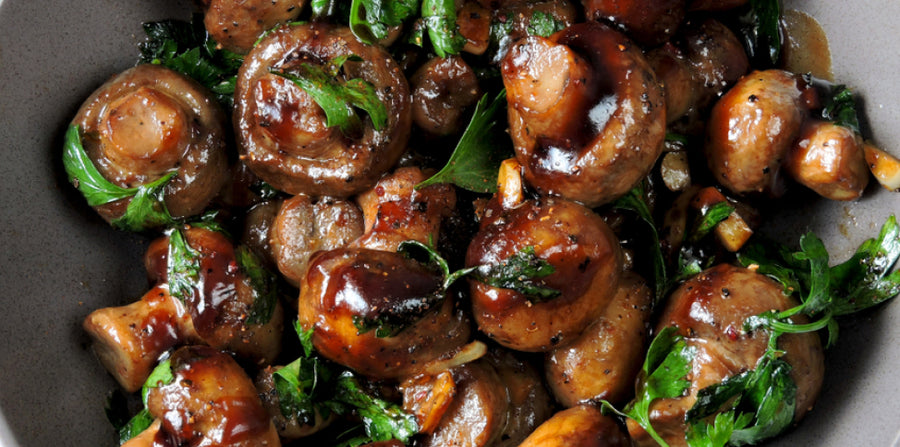Wash and remove stems from mushrooms. Melt butter in skillet. Add mushrooms, worcestershire, salt, pepper and hot sauces to butter. Cover pan; cook mushrooms on medium heat, stirring frequently. Cook about 20 minutes. Do not let mushrooms stick to skillet. Serve hot.