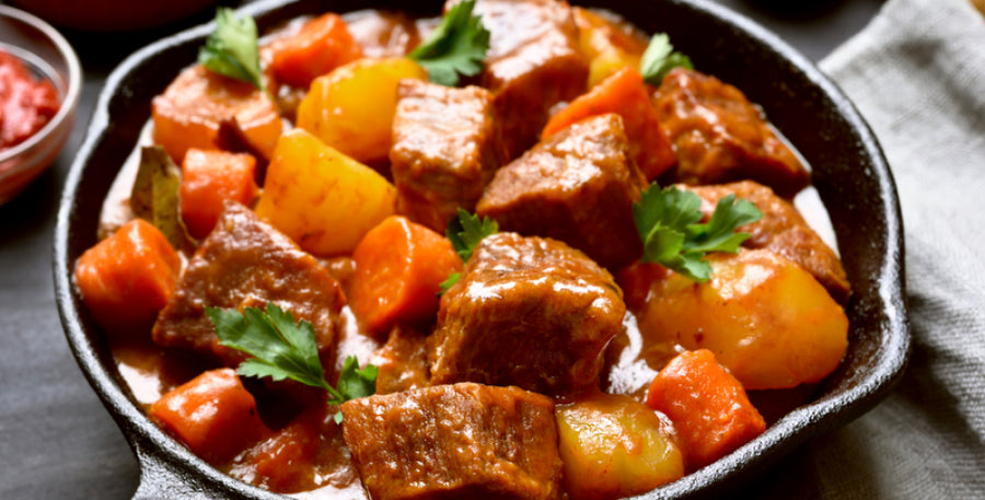 In large soup pot, combine broth, water, beef and Worcestershire sauce. Bring to boil. Simmer on low heat until beef is done. Add the remaining ingredients and simmer on low heat until vegetables are done. Great over rice and topped with cheese.